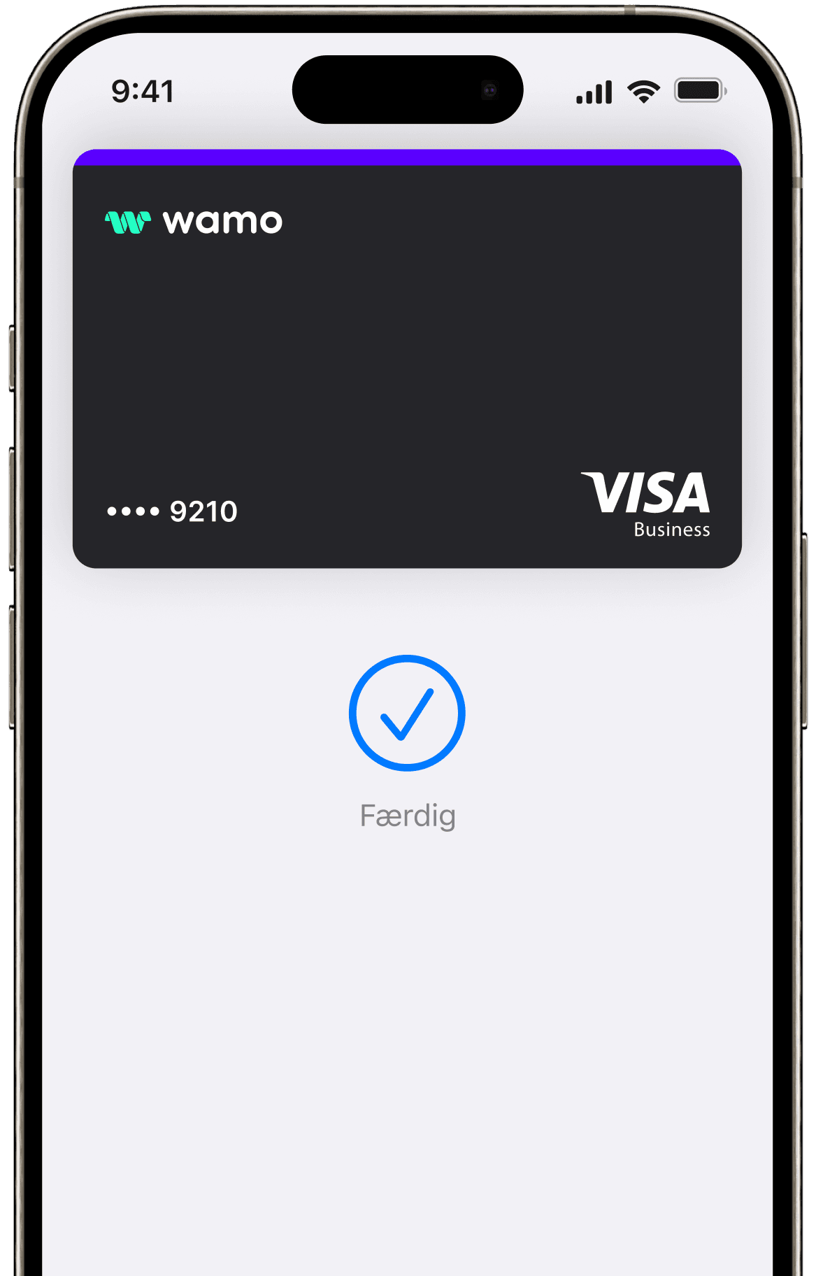 Nu kan du bruge dit wamo Visa debetkort med Apple Pay til at foretage sikre, kontaktløse betalinger i butikker, online eller i apps. Bare tryk og gå – ingen kort eller kontanter nødvendige.