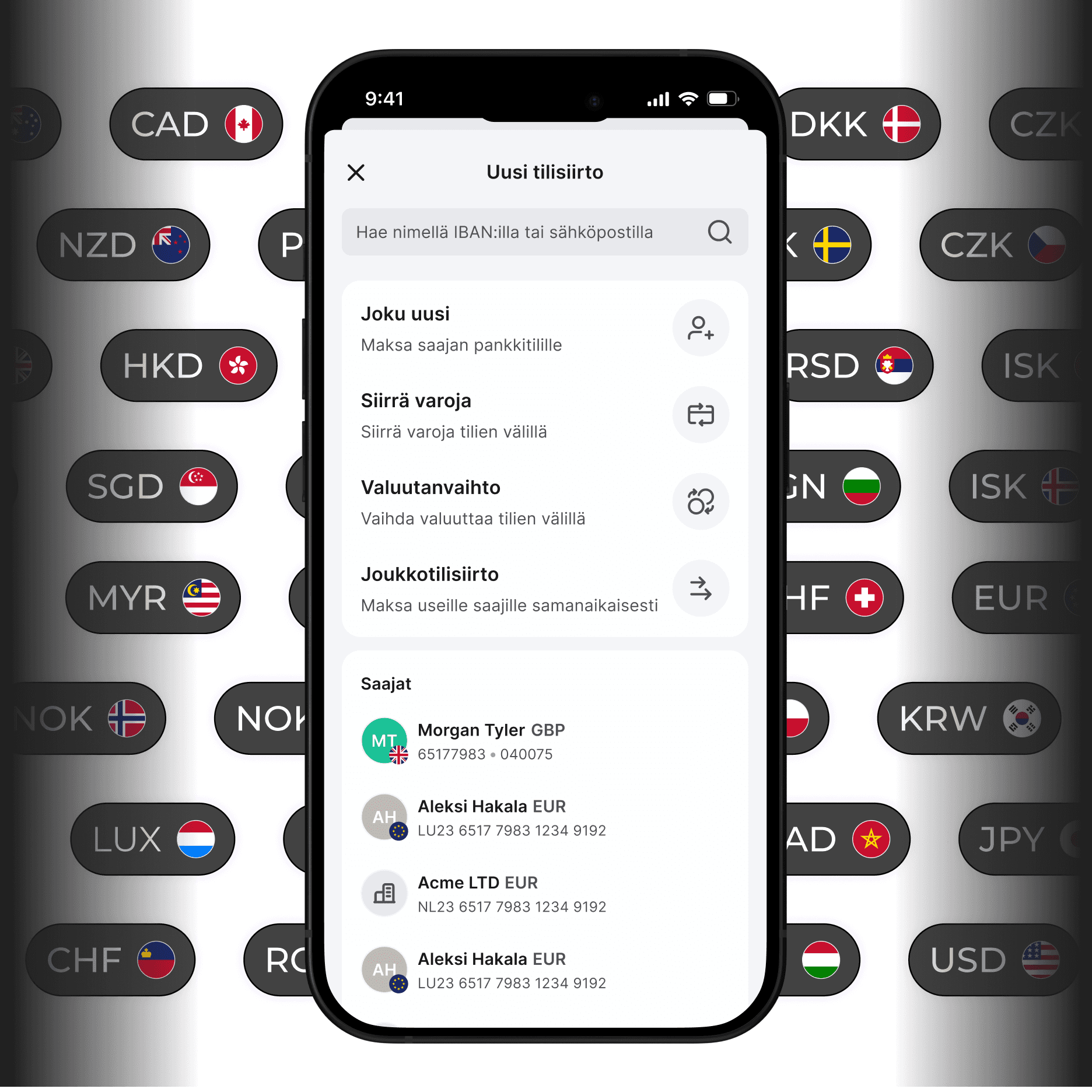 Lähetä paikallisia tai kansainvälisiä maksuja suoraan sovelluksesta – nopeasti, turvallisesti ja aina läpinäkyvästi.