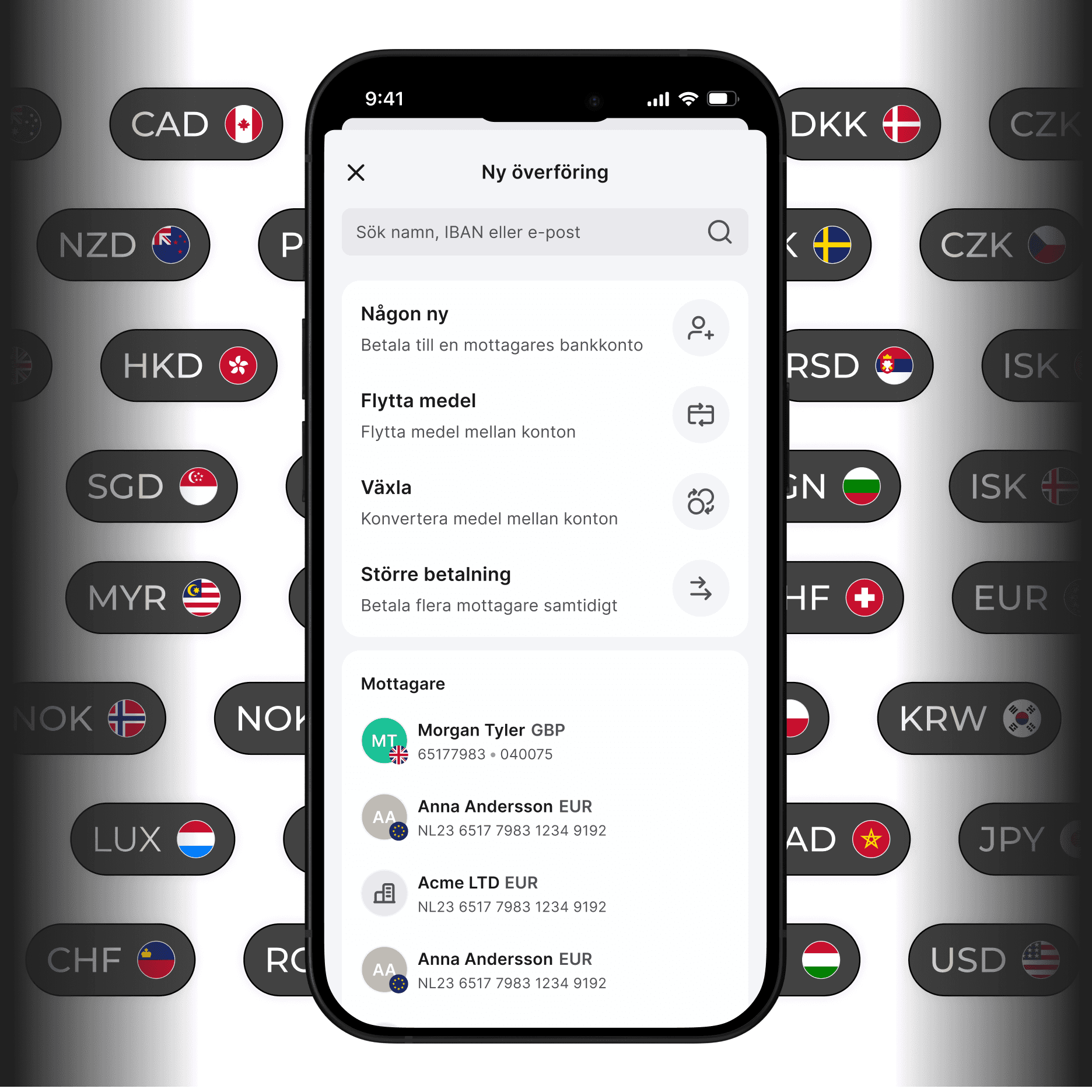 Skicka lokala eller internationella betalningar direkt från din app – snabbt, säkert och alltid transparent.